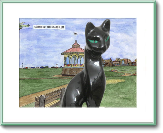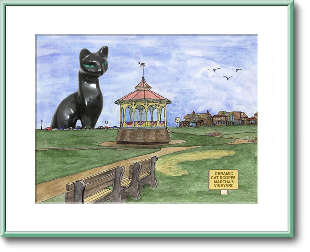 Ceramic Cat Takes Oaks Bluff - 10.5"x8"
