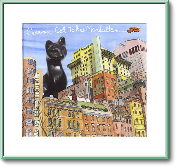 Ceramic Cat Takes Manhattan - 8.75"x8"